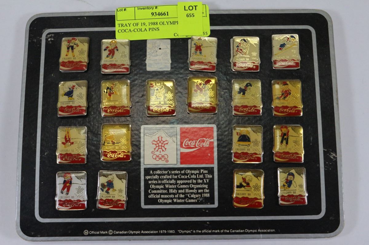 TRAY OF 19, 1988 OLYMPIC EVENT COCA-COLA PINS