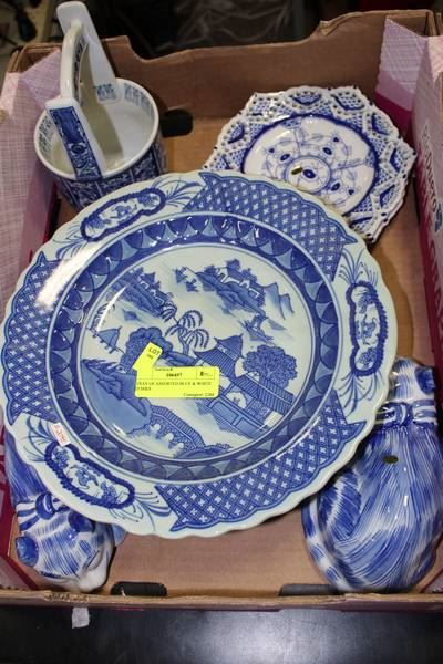 TRAY OF ASSORTED BLUE & WHITE DISHES