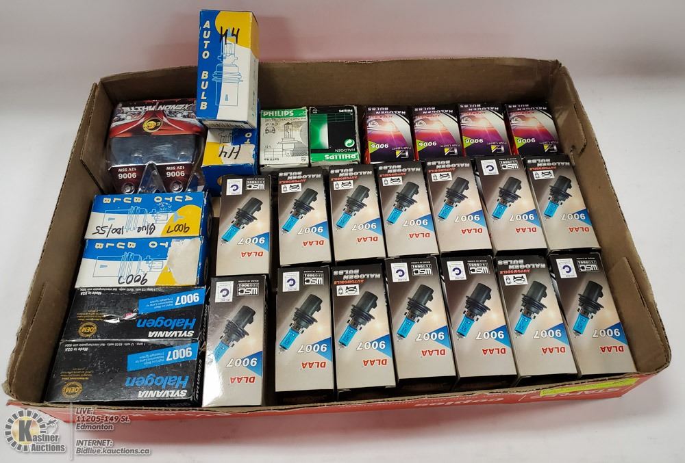 TRAY OF HALOGEN AUTOMOTIVE BULBS MOSTLY 9007 & 9006, H4-AUTOMOTIVE