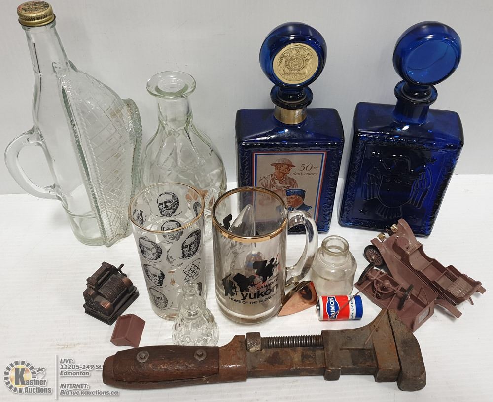 DECANTERS, PIPE WRENCH & ETC. COLLECTIBLES