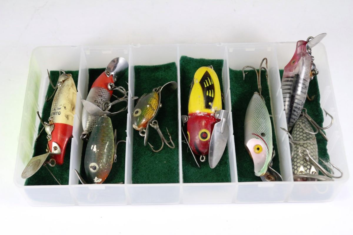 TRAY OF VINTAGE FISHING LURES INCLUDING HEDDON