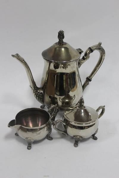 TRAY WITH SILVER PLATE TEA SET