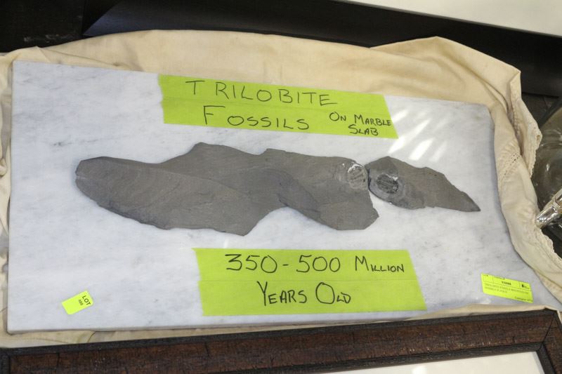 TRIOLIBITE FOSSILS MOUNTED ON MARBLE PLAQUE