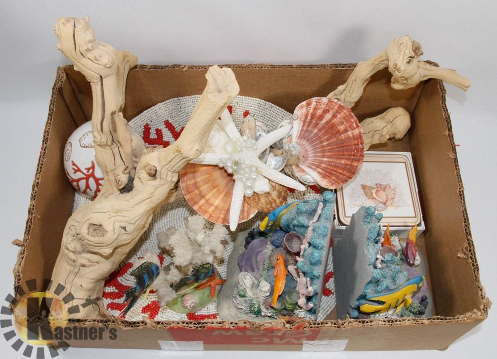 BEAD MAT, CERAMIC GLOBE, REEF BOOKENDS, REEF FIGURINE, SEASHELL COASTERS, DRIFTWOOD TABLE DECO.GENERAL