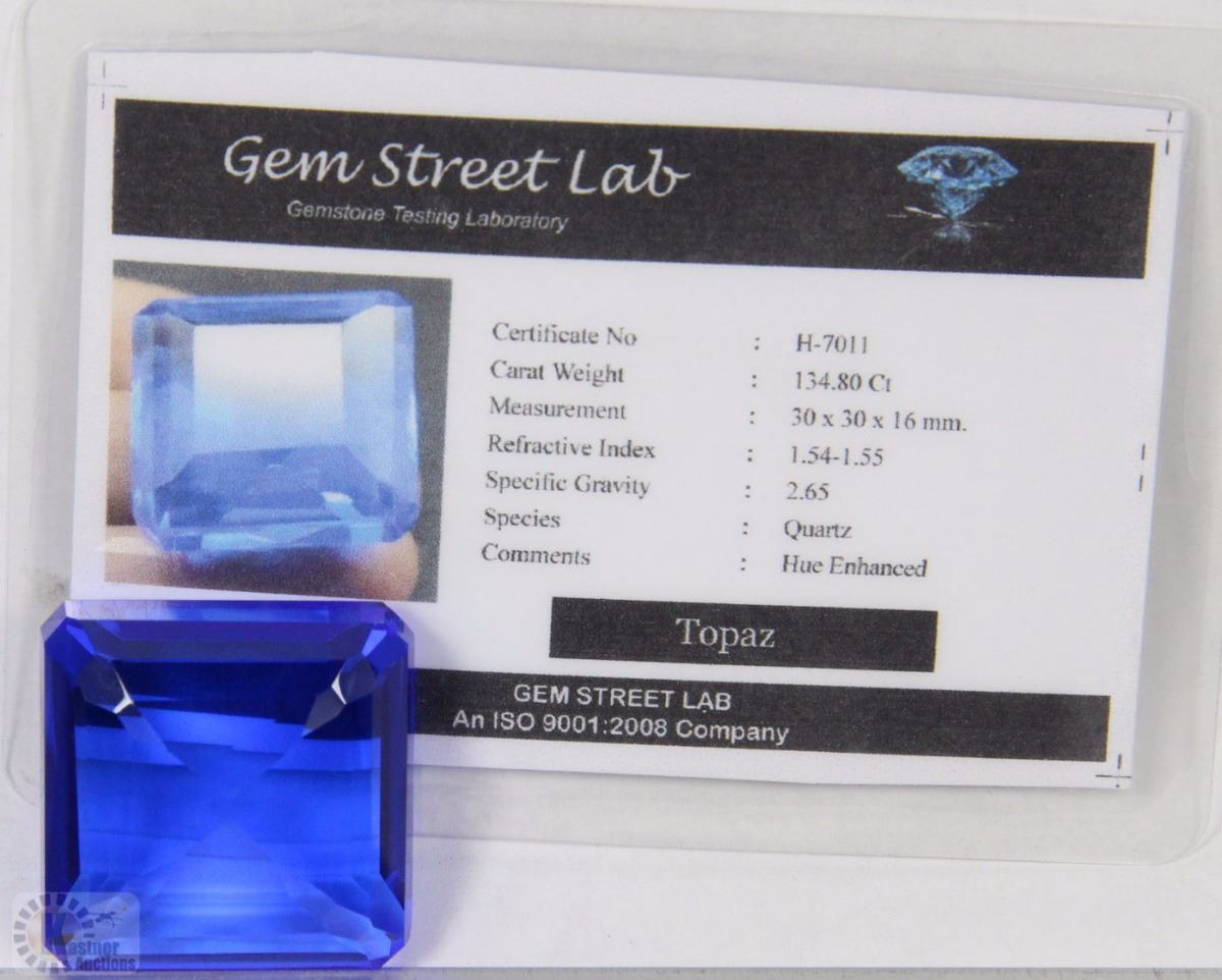 TRP32 BLUE TOPAZ 134.80CT HUE ENHANCED WITH COA
