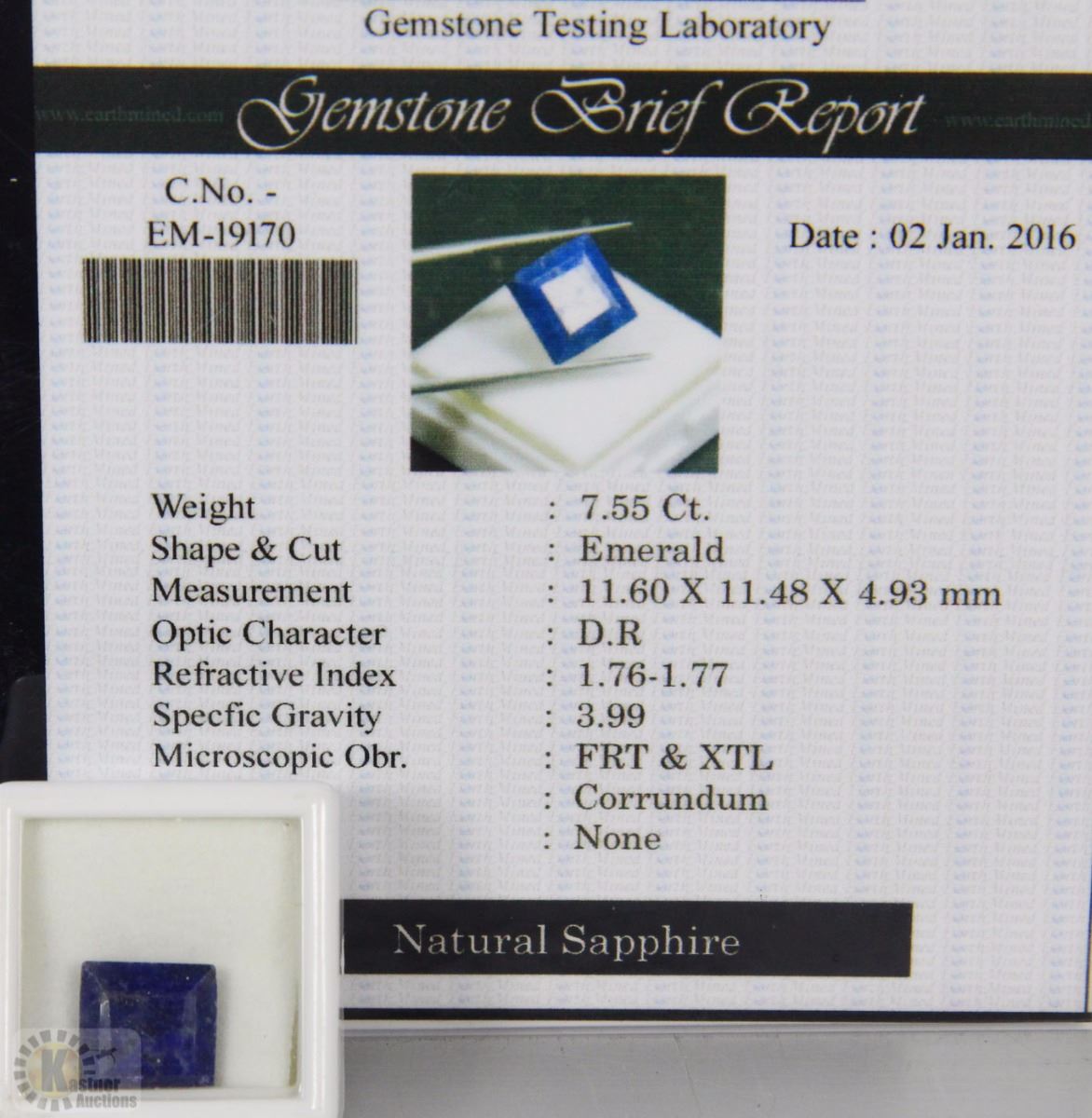 TRP37 NATURAL SAPPHIRE 7.55CT WITH COA