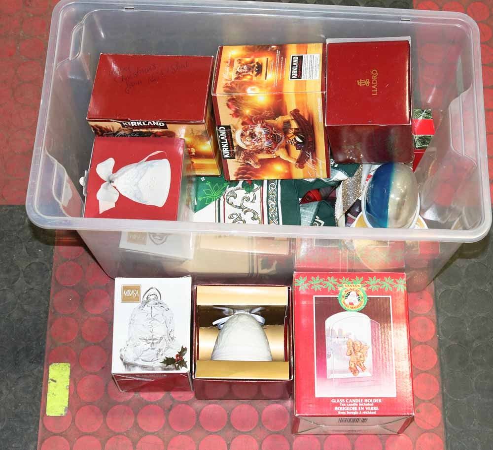 TUB WITH SEVERAL BOXED & LOOSE ORNAMENTS.