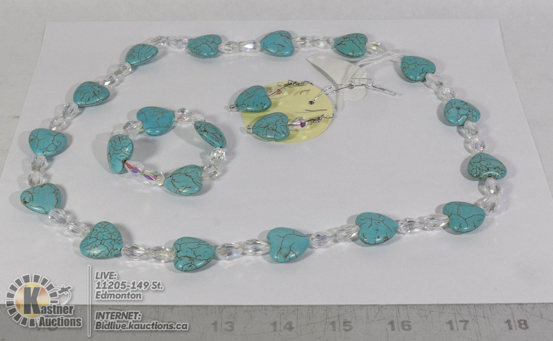 SET HAS NECKLACE, BRACELET AND EARRINGS, WITH CRYSTAL BEADS