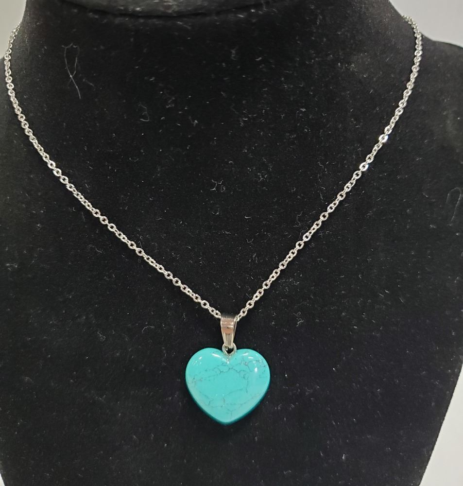 TURQUOISE STONE HEART NECKLACE STAMPED 925