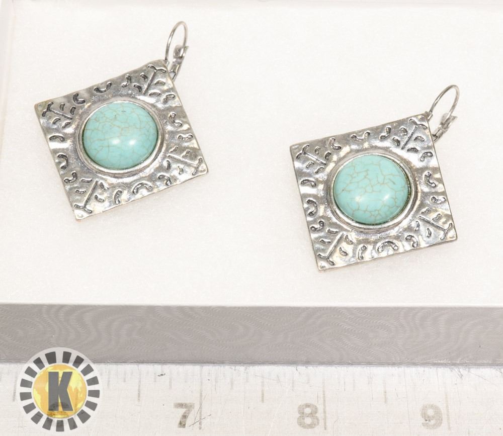 VINTAGE PAIR OF COSTUME EARRINGS WITH TURQUOISE STYLE CENTER STONE.***ITEM LOCATED IN LETHBRIDGE AB