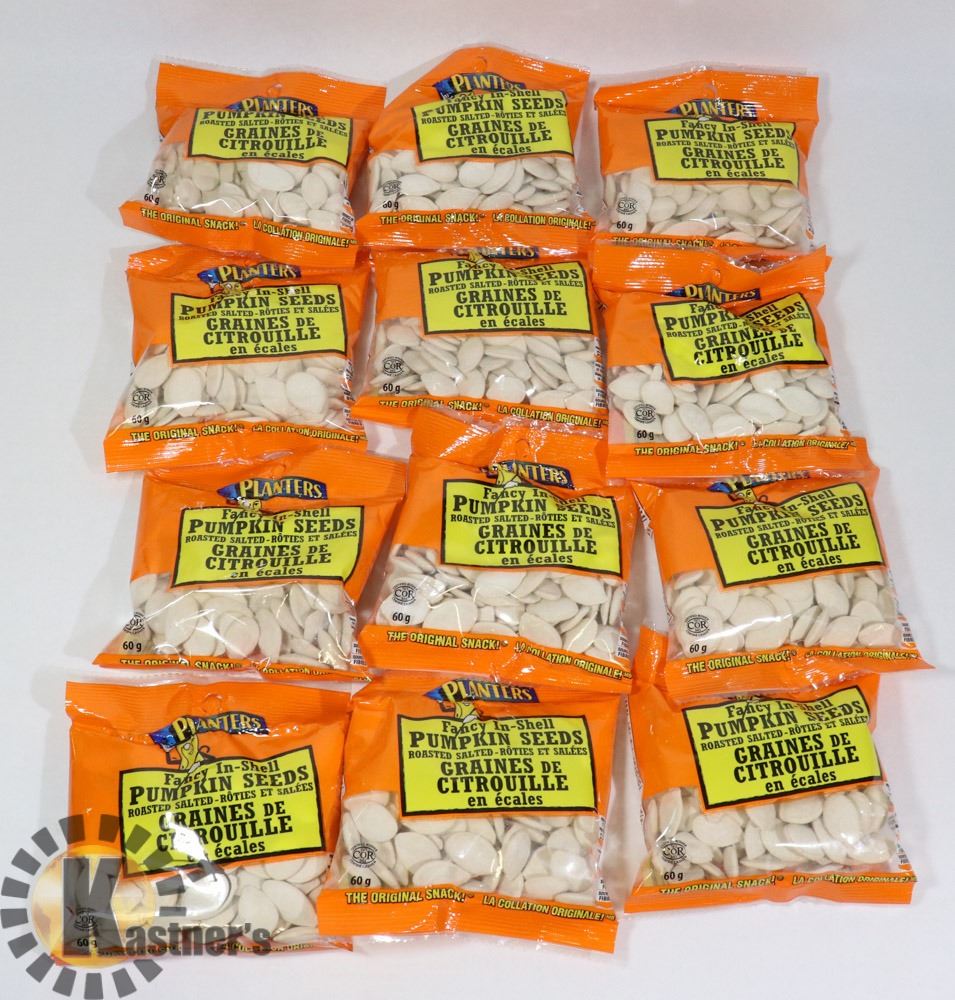TWELVE 60G BAGS OF PLANTERS IN SHELL PUMPKIN