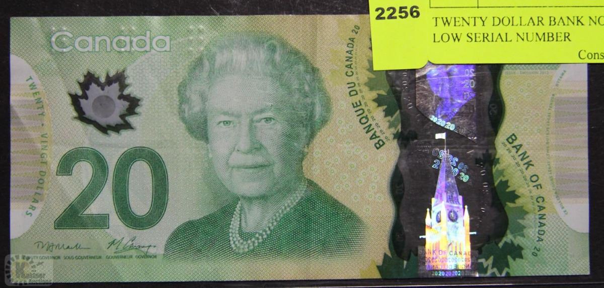 TWENTY DOLLAR BANK NOTE WITH LOW SERIAL NUMBER