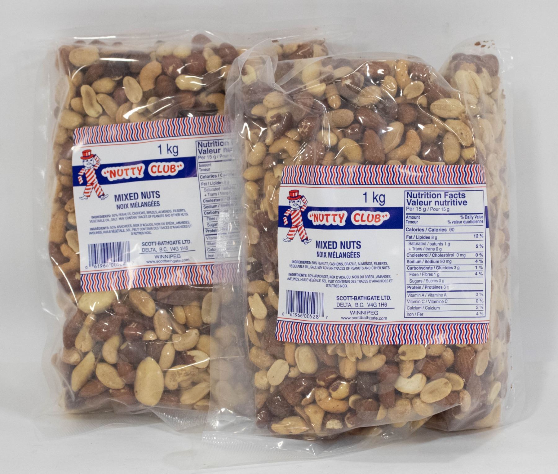TWO 1 KG BAGS OF NUTTY CLUB MIXED PEANUTS