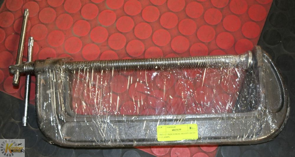 TWO 12" INDUSTRIAL HEAVY-DUTY C-CLAMPS.
