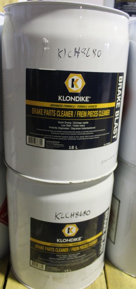TWO 18L BARRELS OF KLONDIKE BRAKE PARTS CLEANER