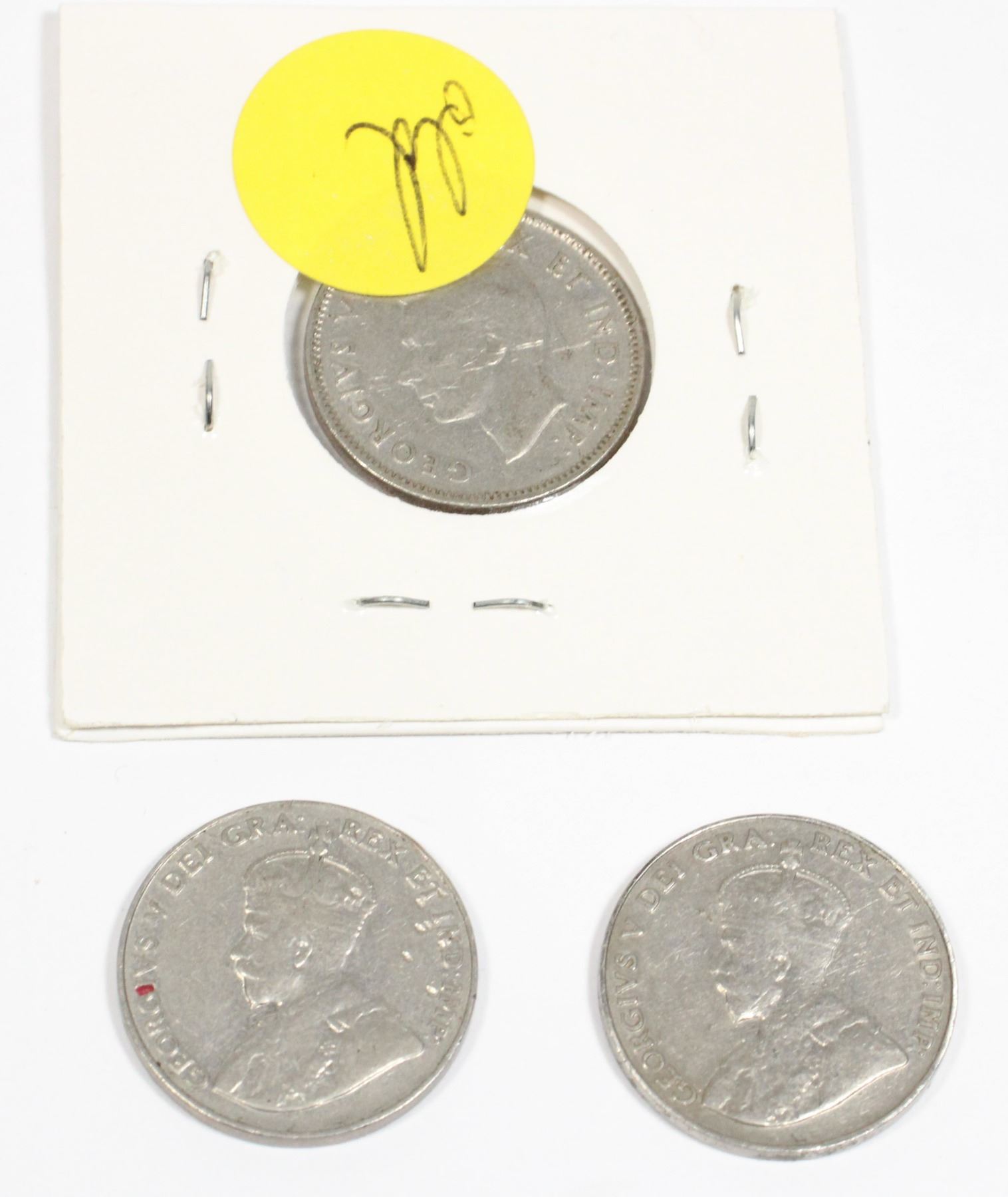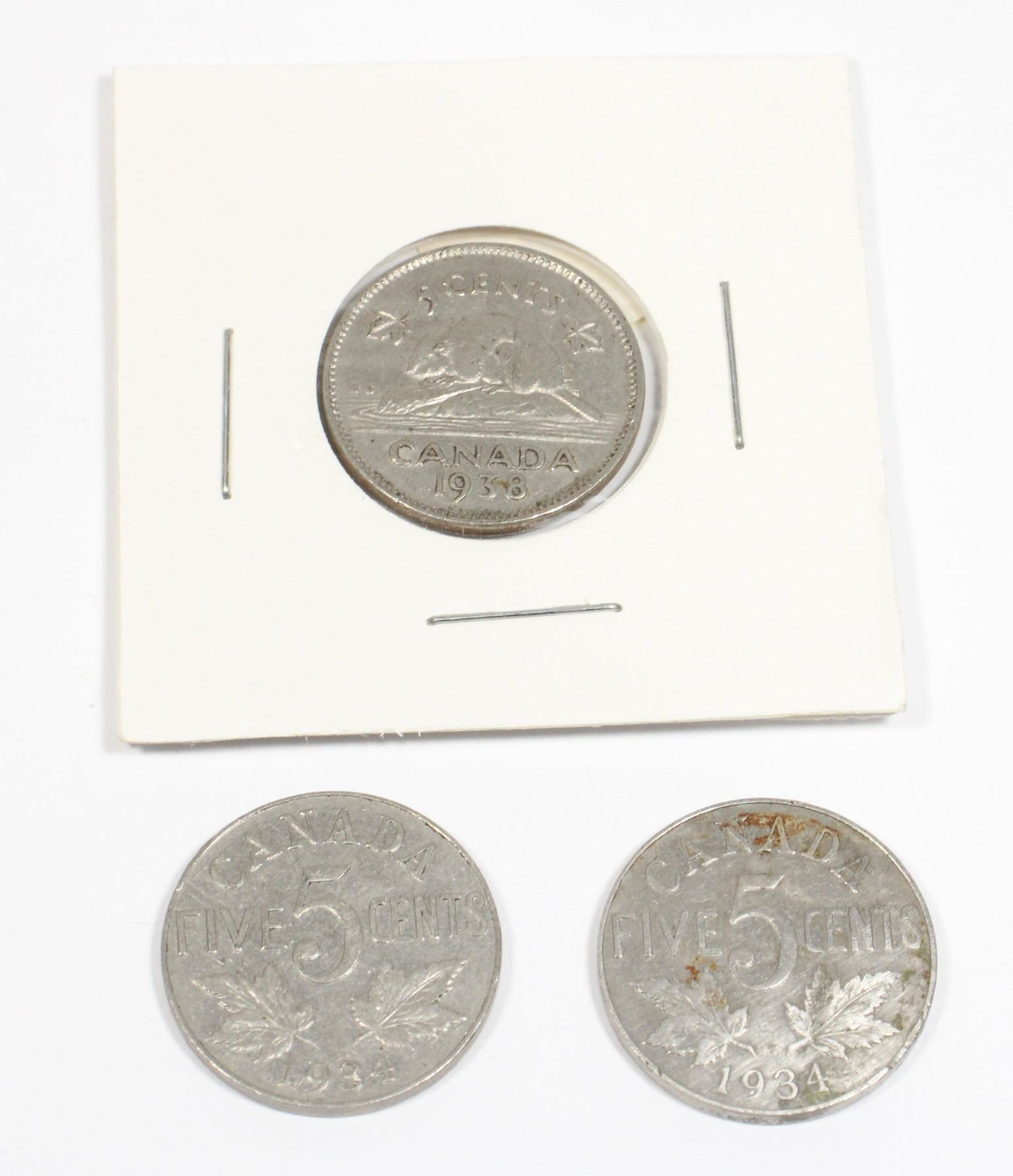 TWO 1934 AND ONE 1938 CANADIAN 5 CENT COINS