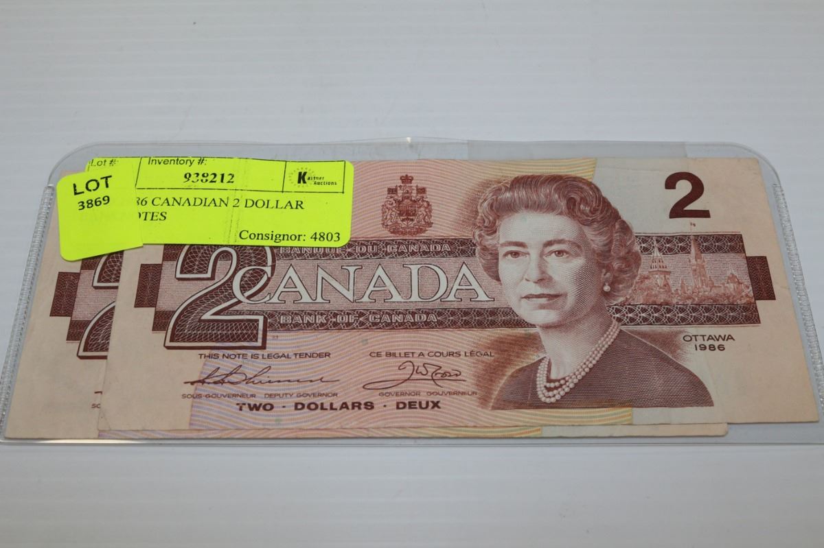 TWO 1986 CANADIAN 2 DOLLAR BANKNOTES