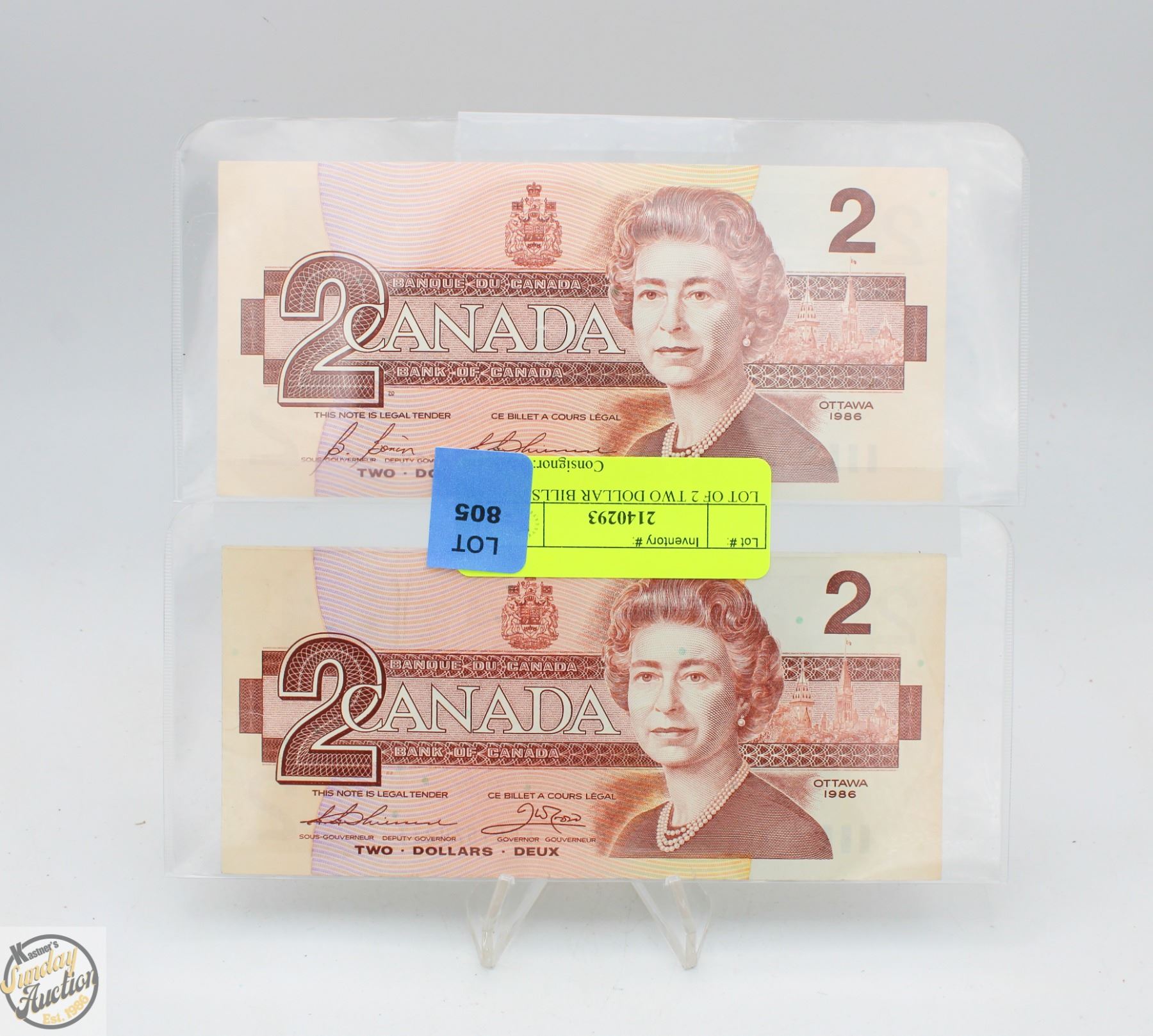 TWO 1986 CANADIAN TWO DOLLAR BILLS