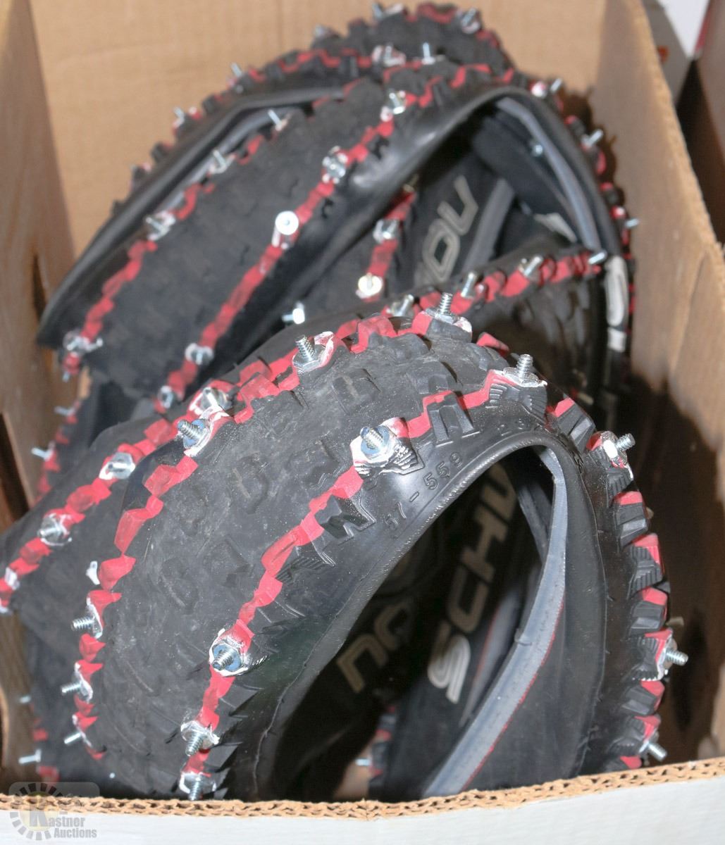 TWO 26 X 2.25 METAL STUDDED WINTER BICYCLE TIRES