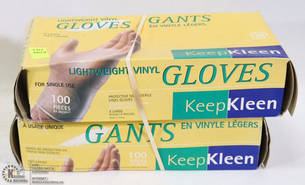 TWO BOXES OF DISPOSABLE VINYL GLOVES SIZE X-LARGE