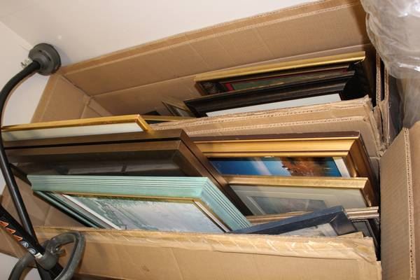 TWO BOXES OF ESTATE PICTURS INCLUDES OIL ON CANVAS