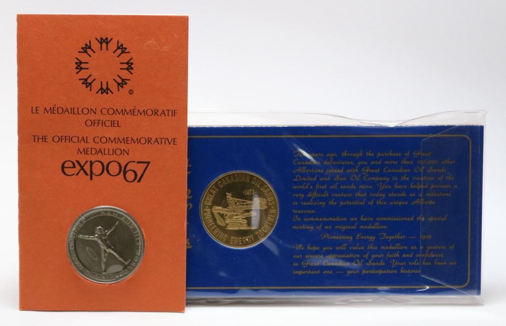 EXPO 1967 COMMEMORATIVE & 1975 GREAT CANADIAN OILSANDS. COLLECTIBLES. CURRENCY.