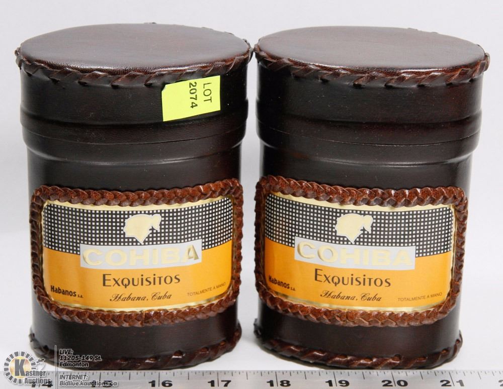 TWO COHIBA LEATHER CUBAN CIGAR HOLDERS