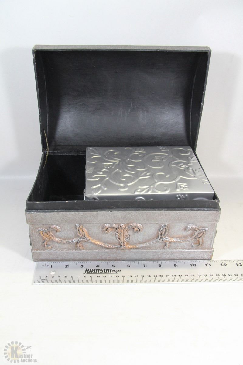 TWO COLLECTOR BOXES ONE IN THE SHAPE OF A CHEST