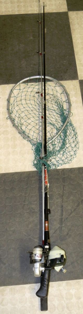 TWO FISHING RODS WITH REELS & NET