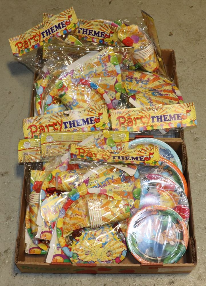 TWO FLATS OF BIRTHDAY SUPPLIES