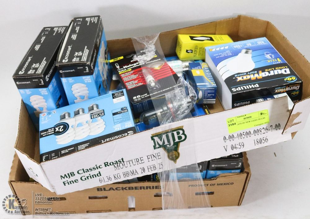 TWO FLATS OF ASSORTED NEW LIGHT BULBS