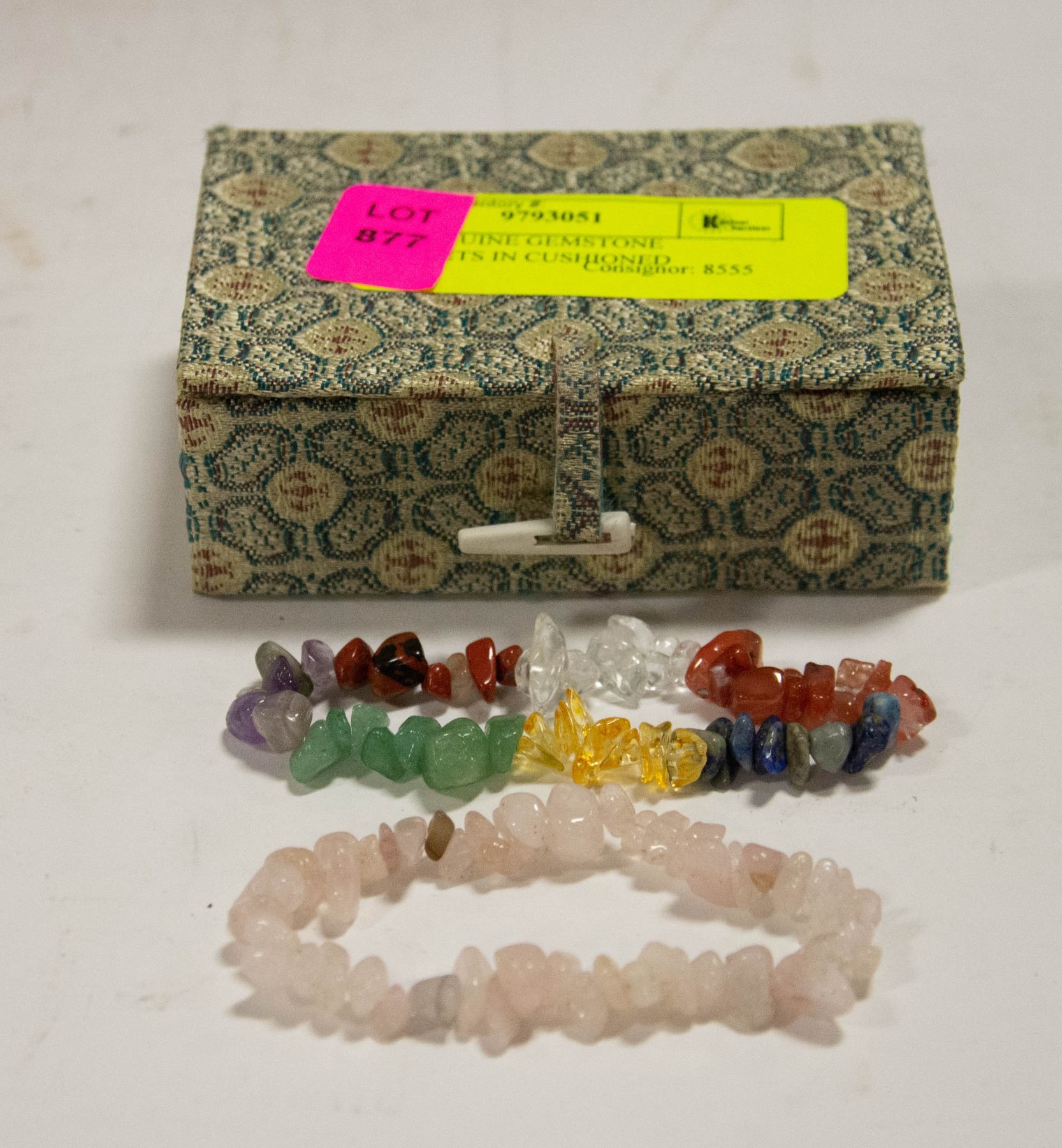 BOX - ROSE QUARTZ BRACELET + CHAKRA STONE BRACELET (CARNELIAN, RED JASPER, CLEAR QUARTZ, LAPIS LAZULI, CITRINE, GREEN AVENTURINE, AND AMETHYST **ALL ITEMS MUST BE REMOVED BY 5PM SATURDAY, MAY 13TH 2023. ALL REMAINING ITEMS WILL BE SUBJECT TO A $6.00 PER DAY STORAGE CHARGE. ANY ITEMS REMAINING AFTER MONDAY, MAY 29TH, 2023 WILL BE CONSIDERED FORFEITED. NO REFUNDS WILL BE ISSUED FOR FORFEITED ITEMS. TO SCHEDULE A PICK UP APPOINTMENT CLICK HERE