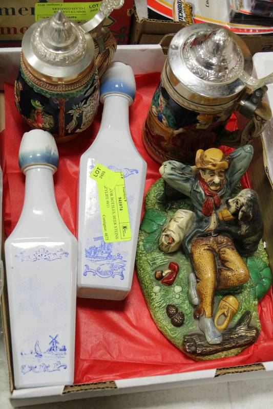 TWO LIQUOR BOTTLES, BEER STEINS 1970 LAZYLIFE #811