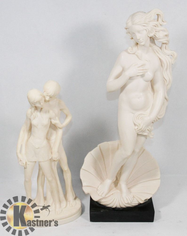 BIRTH OF APHRODITE - VENUS RISING STATUE; 17"H AND HEAVY; YOUNG COUPLE IN LOVE STATUE; 12"H. HOUSEHOLD.
