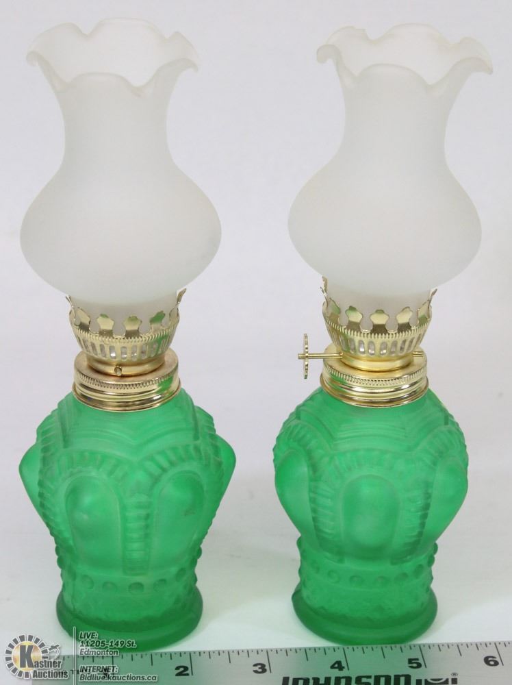 TWO MINIATURE OIL LAMPS WITH SHADES