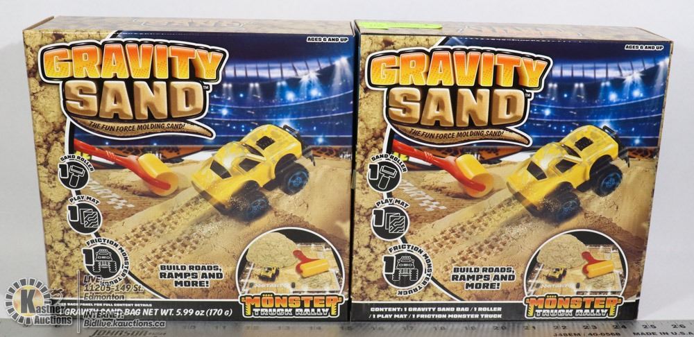 EACH SET CONTAINS 1 SAND ROLLER, 1 PLAY MAT, 1 FRICTION MONSTER TRUCK, 1 GRAVITY SAND BAG