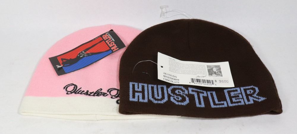 TWO NEW HUSTLER TOQUES (ONE PINK, ONE BROWN)