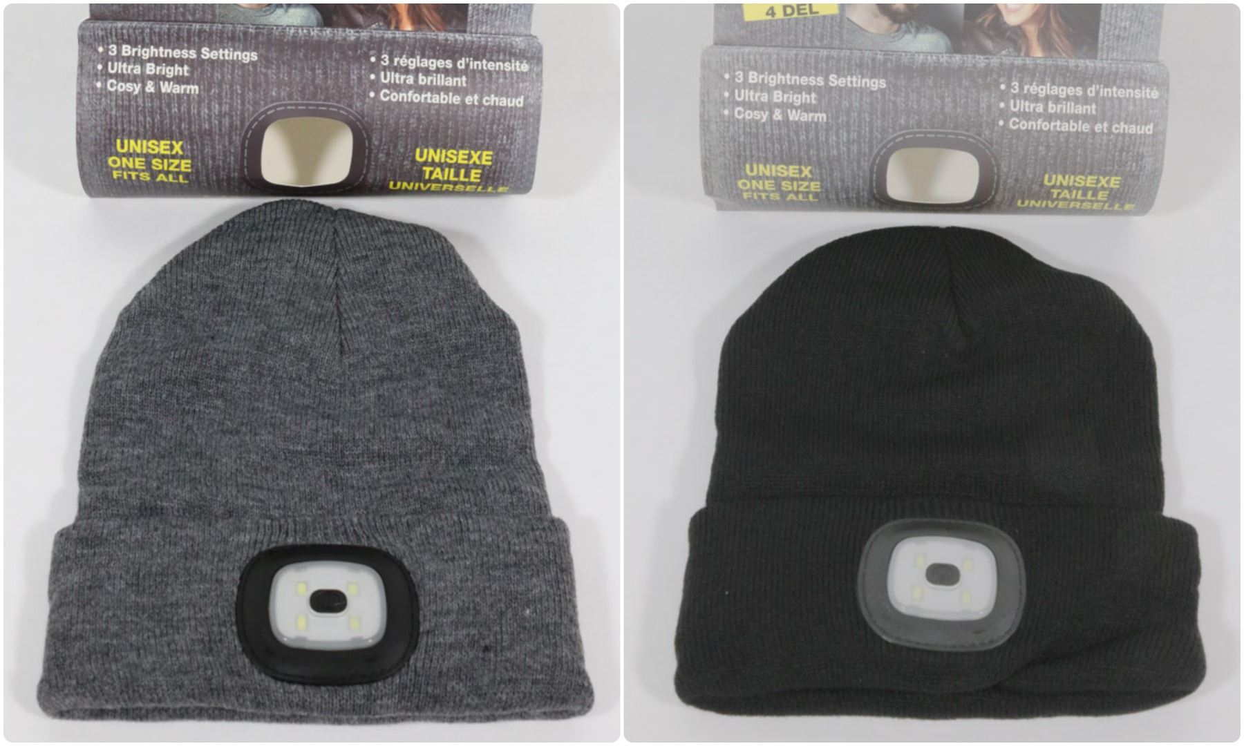(BLACK/ GREY) UNISEX ONE SIZE FITS ALL. 120 LUMENS. 3 BRIGHTNESS SETTINGS ULTRA BRIGHT, COZY AND WARM.