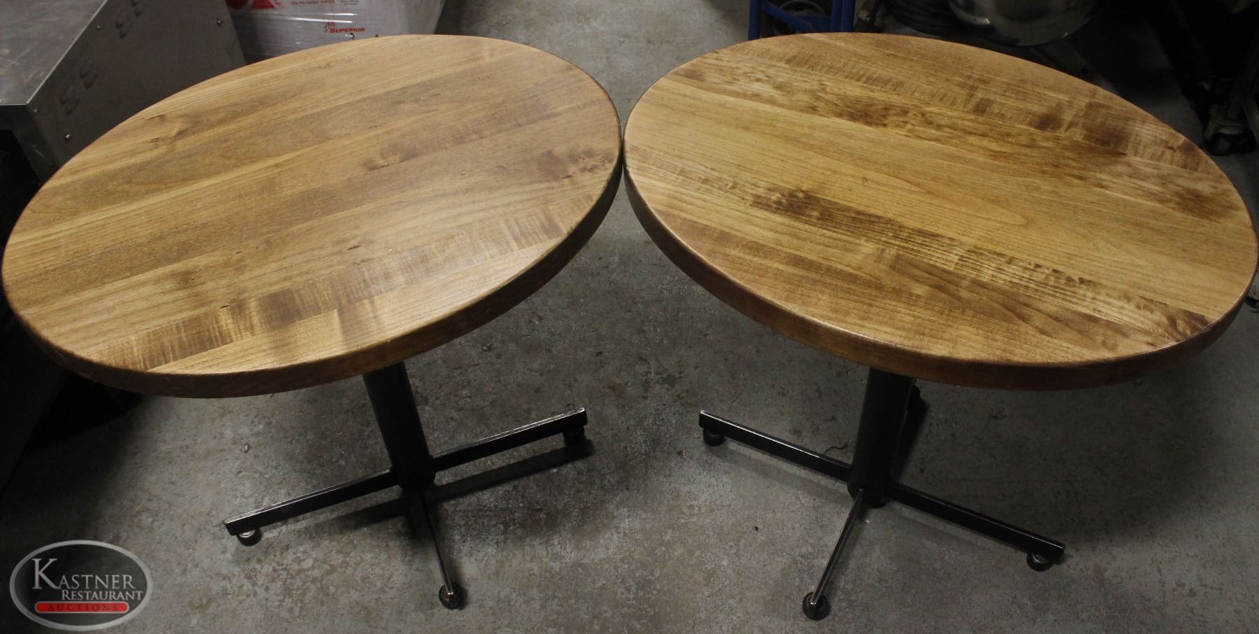 TWO OVAL SOLID WOOD-TOP COMMERCIAL TABLES