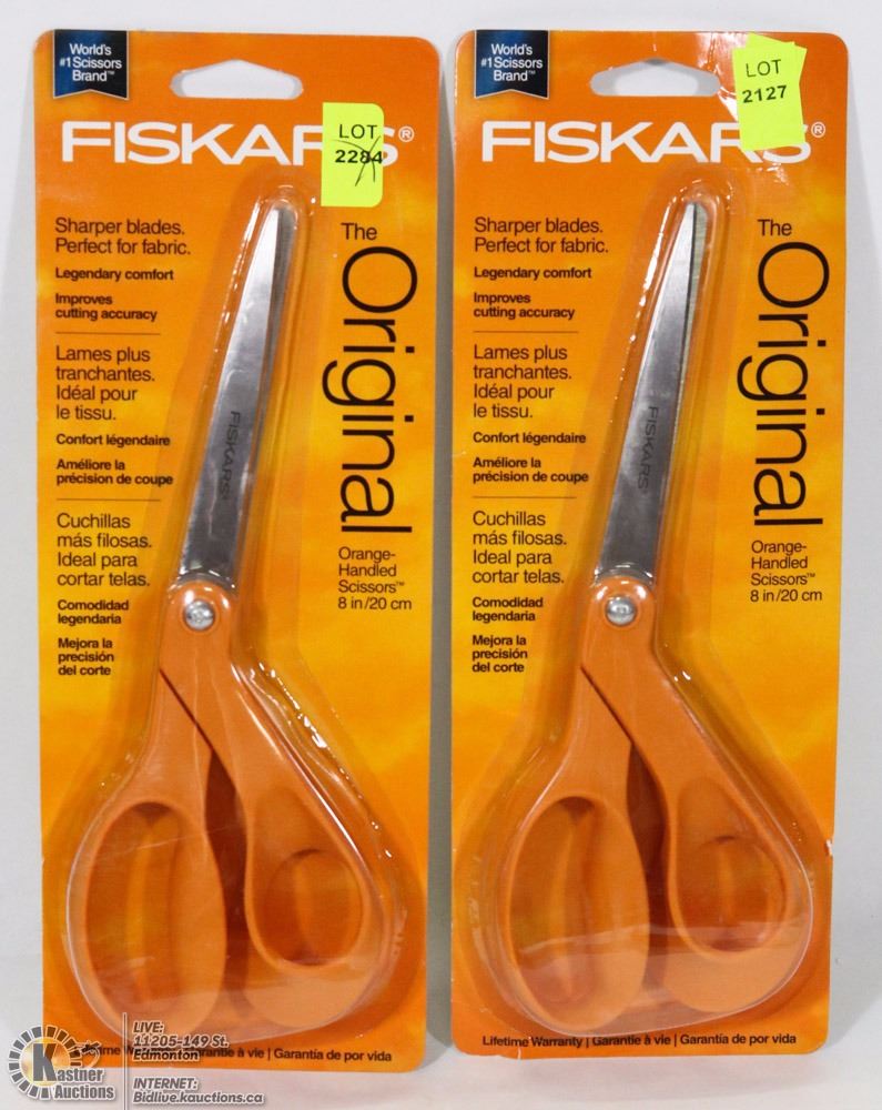 TWO PAIRS OF FISKARS 8" GENERAL PURPOSE SCISSORS
