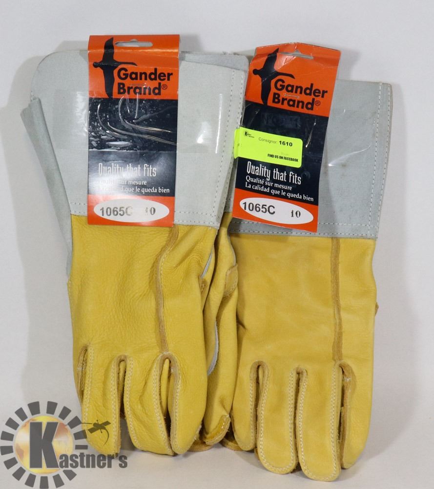 TWO PAIRS OF GANDER BRAND LEATHER LONG CUFF GLOVES