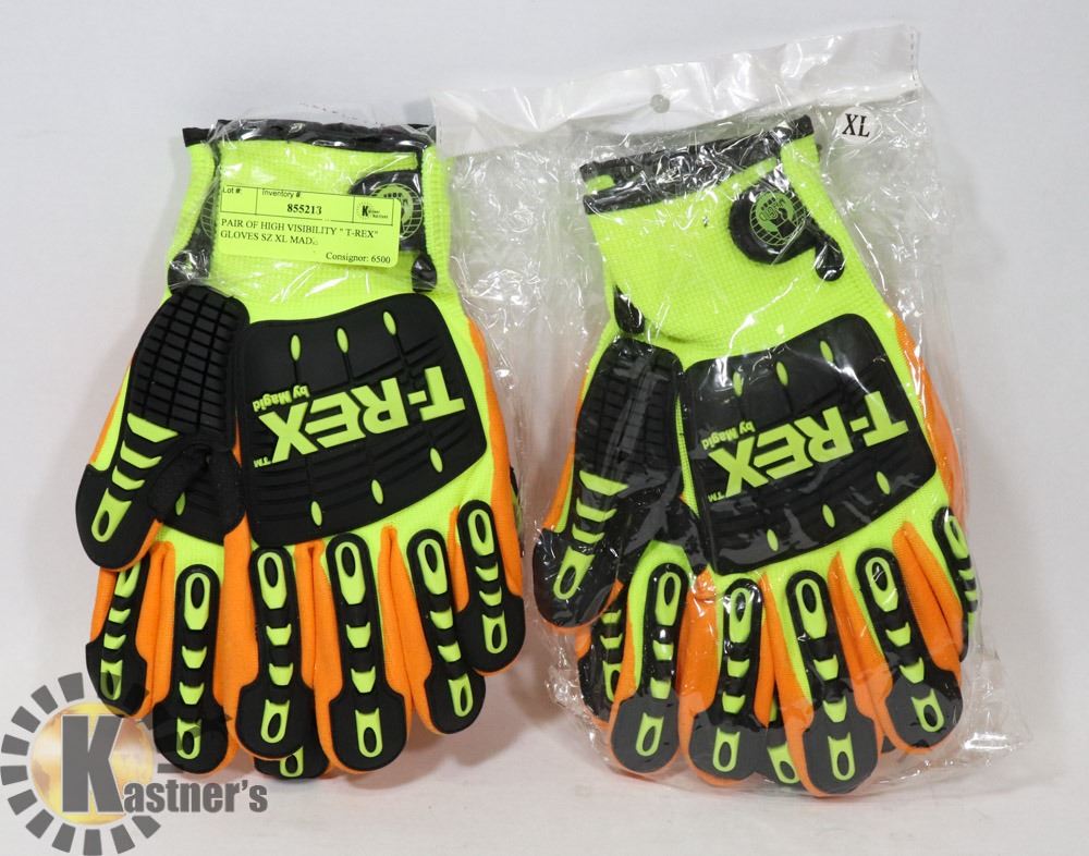 TWO PAIRS OF HIGH VISIBILITY " T-REX" GLOVES SZ XL MADE