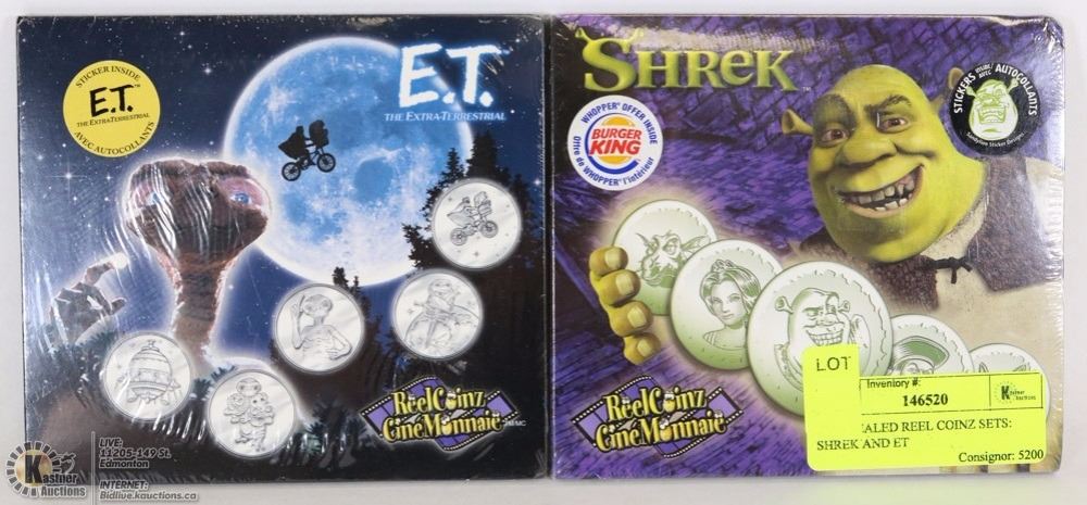 TWO SEALED REEL COINZ SETS: SHREK AND ET
