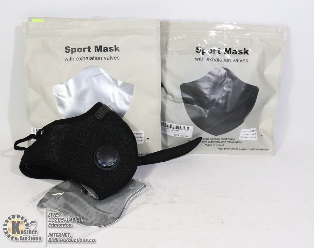 TWO SPORT MASKS WITH EXHALATION VALVES AND