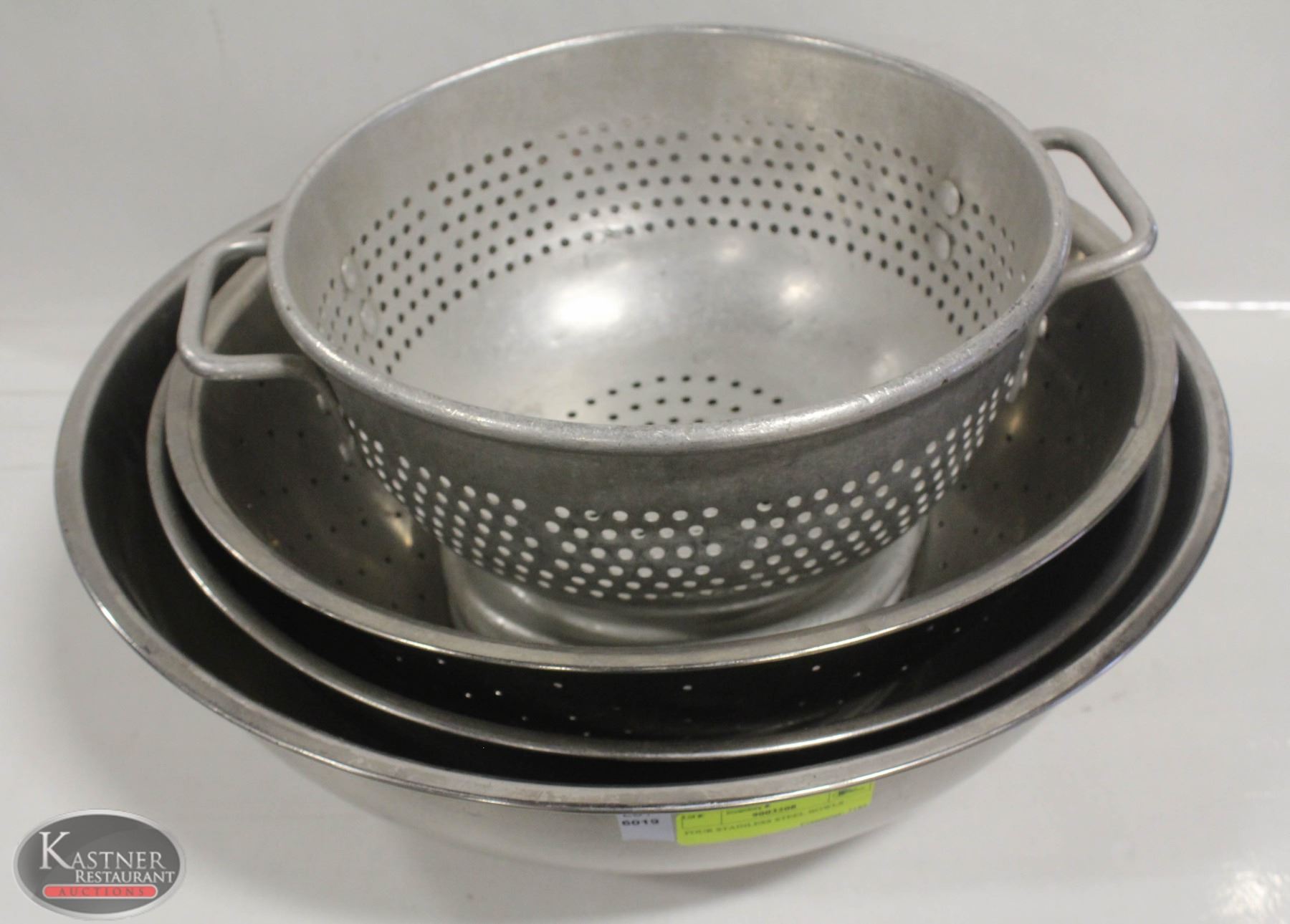TWO STAINLESS STEEL BOWLS W/ 2 COLANDERS