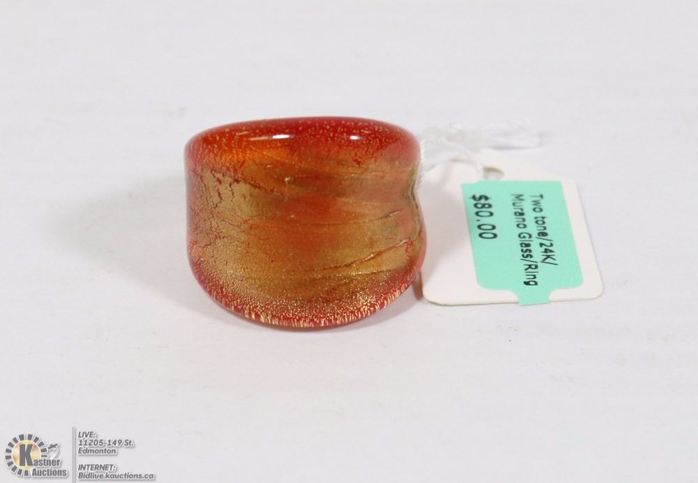 TWO TONE 24K GOLD MURANO GLASS RING SIZE 6
