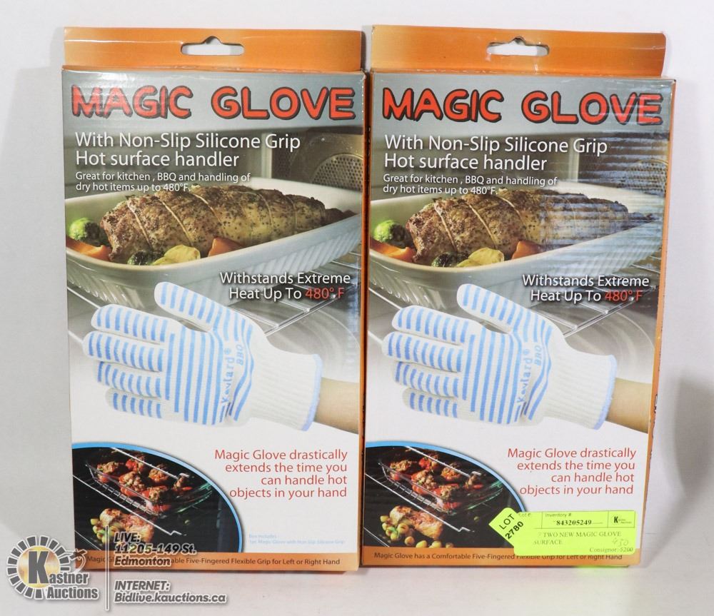 TWO UNCLAIMED MAGIC GLOVE OVEN MITS