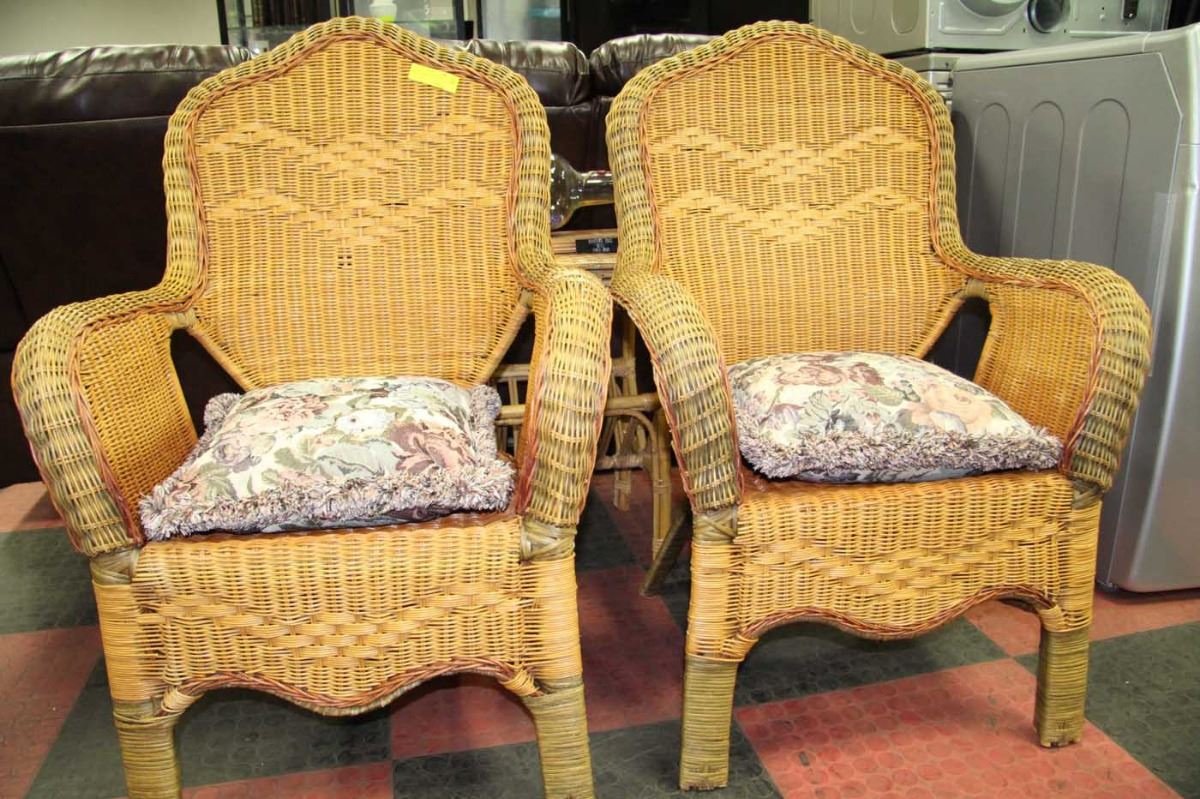 TWO WICKER CHAIRS WITH CUSHIONS