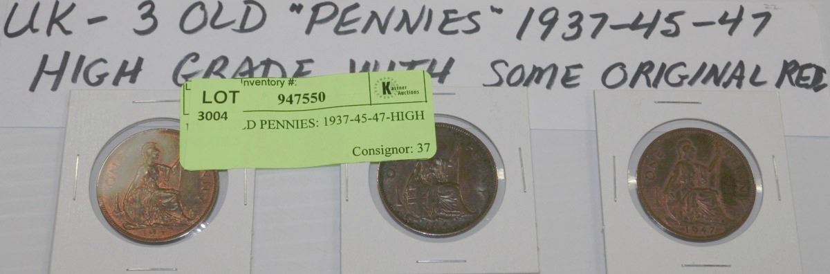 UK - 3 OLD PENNIES: 1937-45-47-HIGH GRADES