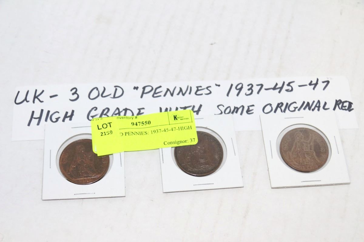 UK - 3 OLD PENNIES: 1937-45-47-HIGH GRADES